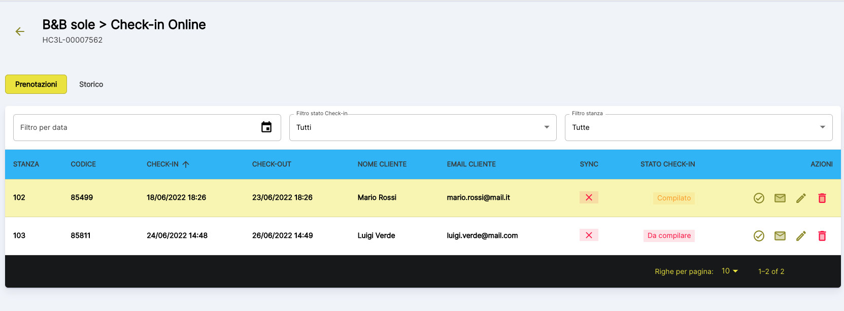 Il checkin lo fa l'ospite, l'invio lo fa BBPass